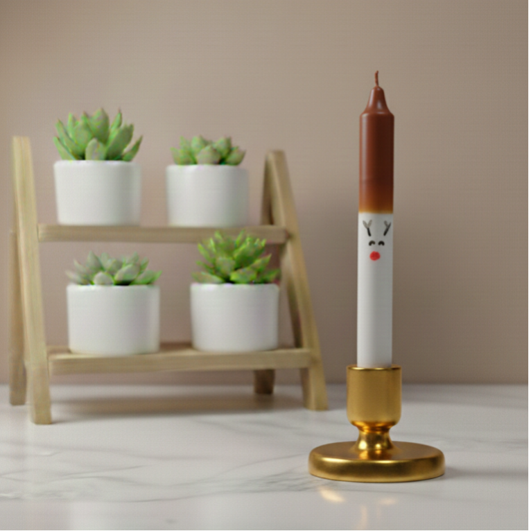 Onze dinerkaars Rudolph brengt een vrolijk kerst tintje aan elke tafel. Met een hoogte van 19 cm en een brandduur van maar liefst 6-7 uur, zorgen deze kaarsen voor een sfeervolle avond. Perfect voor speciale gelegenheden of gewoon om je dagelijkse diner net dat beetje extra flair te geven. Voeg Rudolph toe aan je interieur en laat je gasten versteld staan van deze bijzondere kaarsen!